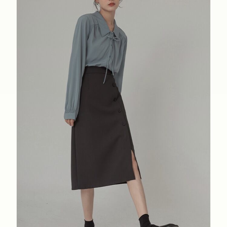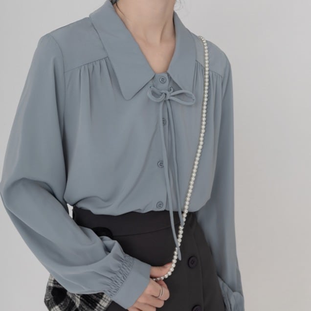 ボウタイデザインロングスリーブシャツブラウス 00164