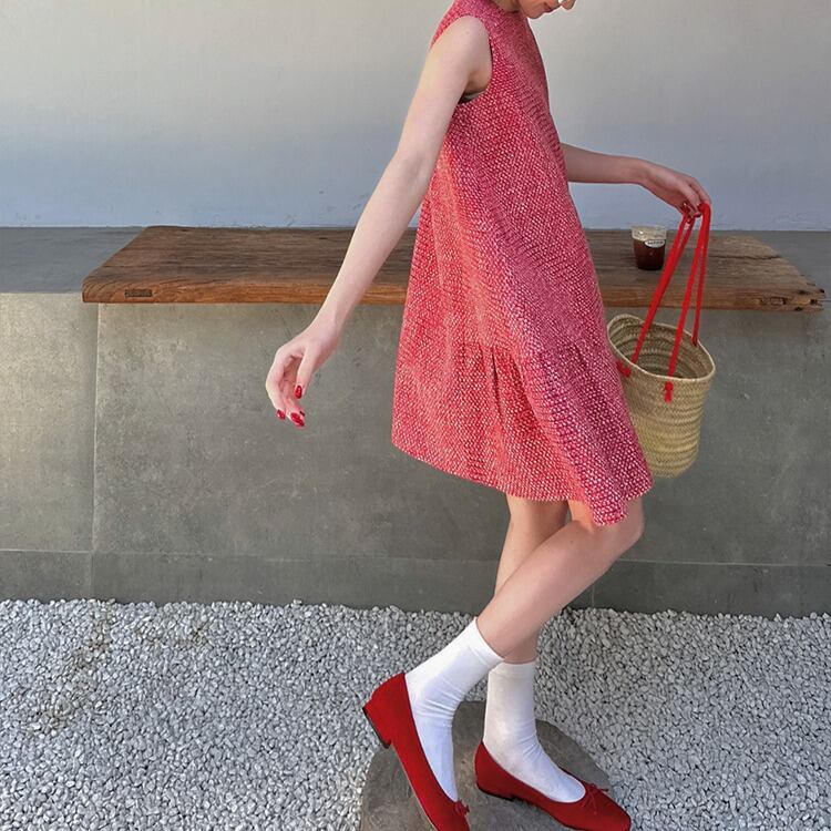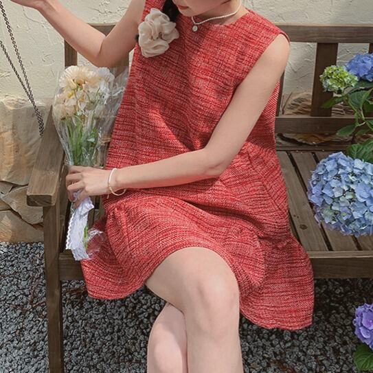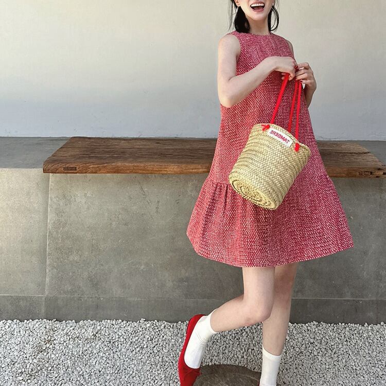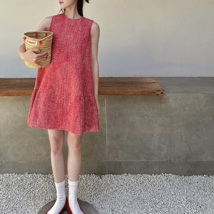 ツイードAラインノースリーブミニワンピース 00036