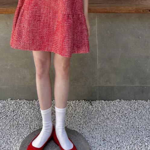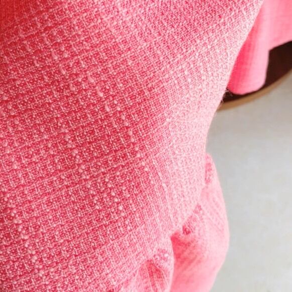 ツイード素材特有の織り柄が、シンプルながらも上品な印象を与えます。