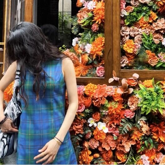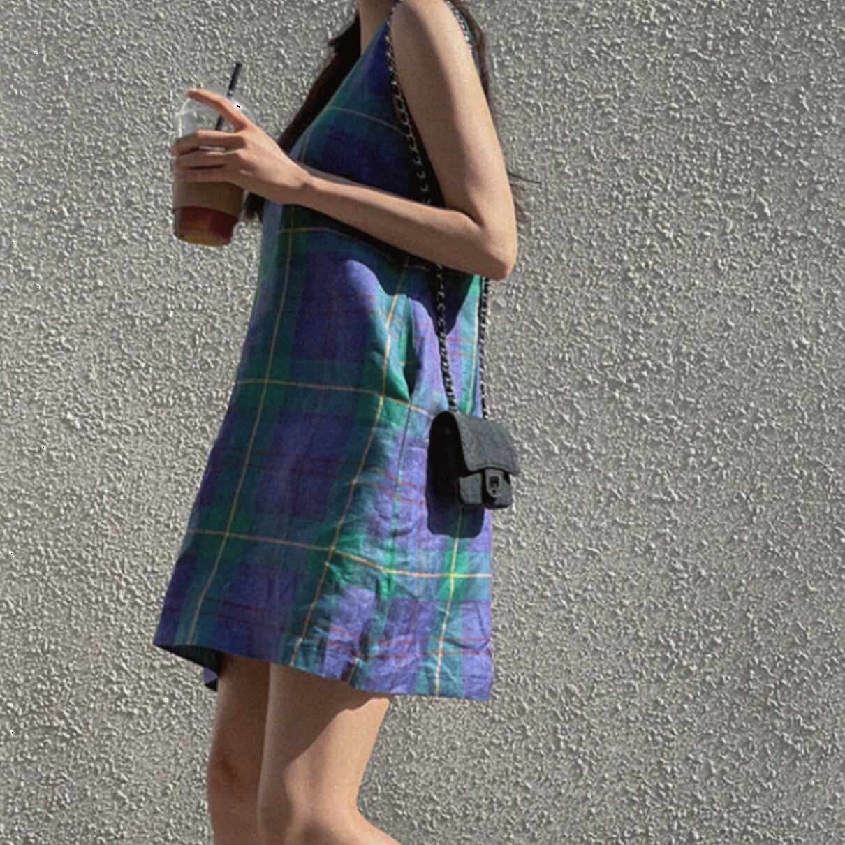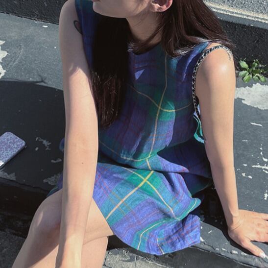爽やかなチェック柄が魅力的なノースリーブワンピース。