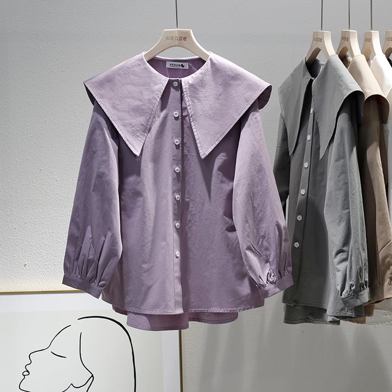 大きな襟が印象的なワイドカラーシャツです。